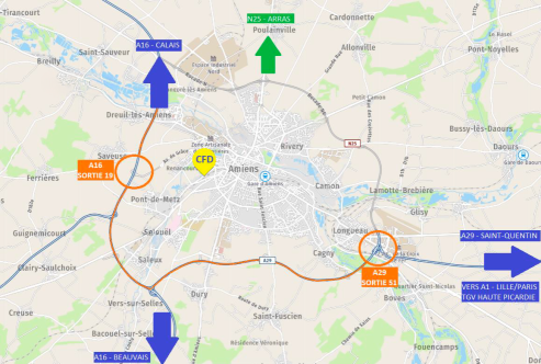 Situé au 400 rue Colbert à Amiens, le CFD bénéficie d’un emplacement privilégié :