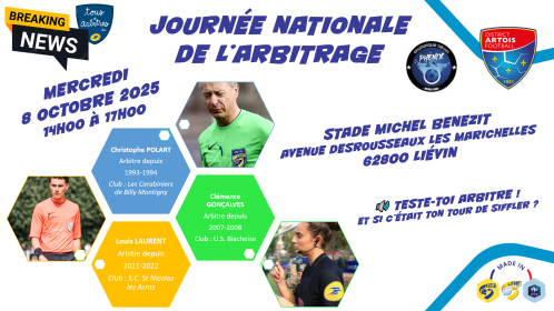 Si vous souhaitez obtenir davantage d’informations à propos de la Journée Nationale de l’Arbitrage sur le territoire de l’Artois, vous pouvez contacter Kévin Verbrugghe, Conseiller en Développement et Fidélisation de l’Arbitrage attaché aux territoires de l’Artois et de la Côte d’Opale, par mail à l’adresse suivante : kverbrugghe@lfhf.fff.fr
