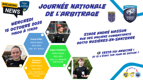 Cette saison, la Journée Nationale de l’Arbitrage se déroulera en plusieurs temps dans chaque District.