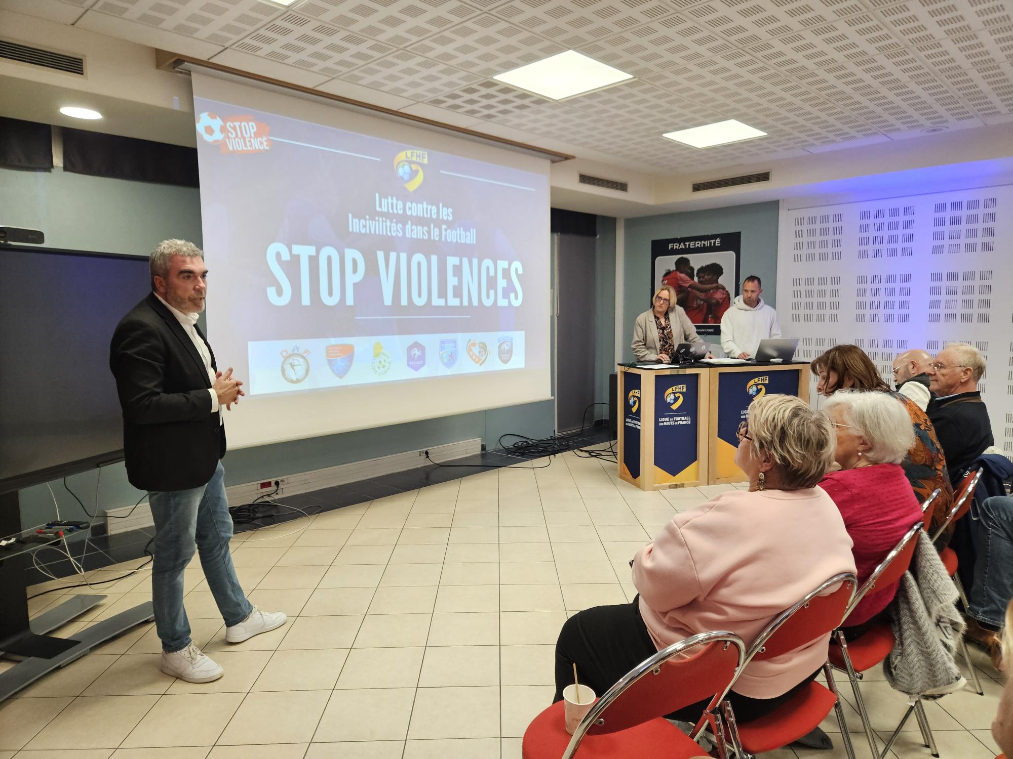 Cédric Bettremieux, Président de notre Ligue, a profité de cette soirée pour présenter l’avancement du Plan Stop Violence mené conjointement avec les 7 Districts du territoire. Un programme structuré visant à renforcer la prévention, accompagner les acteurs de terrain et encourager des comportements plus responsables.